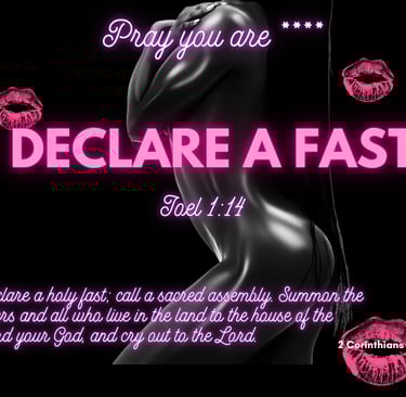 Welcome to Pray! you whore, a blog, that takes you on my personal journey of repentance, reconciliation, and redemption. So recently I have been struggling to stay consistent and get back in routine. My baby is about to be one and I no longer have and excuse... IT IS TIME! However, I have been focusing on surrendering my will for God's will in every detail of my life. The Lord tells us to do this in Proverbs 3:6" in all your ways submit to him, and he will make your paths straight." I want to challenge you all to do this in your walk with God. My biggest issue has been delayed obedience which is the same as disobedience. The scheme of the enemy is distraction, deception and doubt so be aware and fight back. One of the methods God has revealed to me is through fasting. When you need immediate help and to annihilate the enemy yesterday... "declare a fast." As a wellness coach, I have been practicing fasting for quite some time but recently I have been struggling with gluttony, lust and self control. So the Lord has stepped in to confirm how important it is to be obedient and trust in the process and training. I am here to encourage you to walk in obedience and show yourself grace. It is time to get back on the horse and "DECLARE A FAST" to return to obedience, focus and purpose.